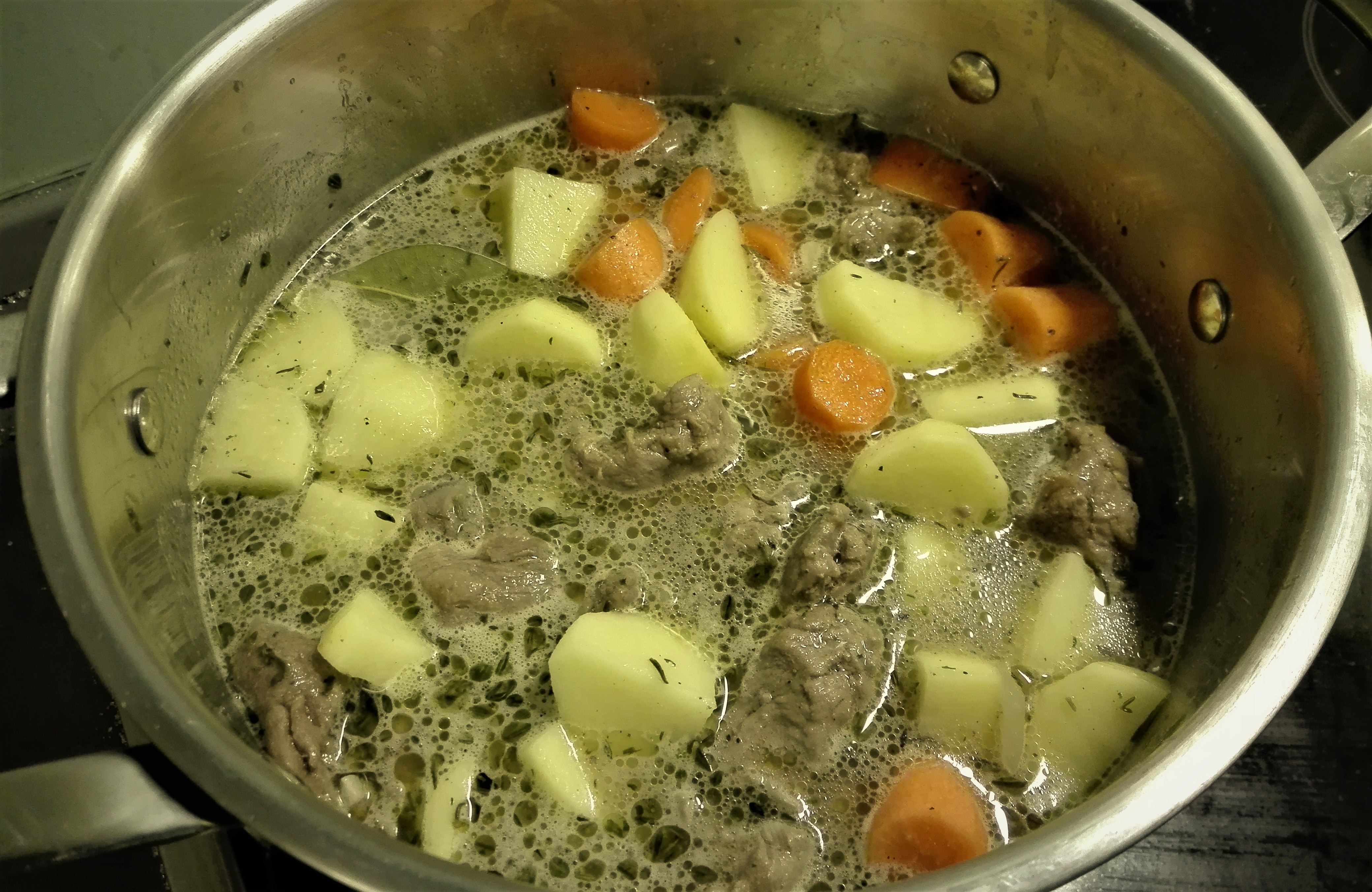 Jeg laver min irske stuvning så simpelt jeg kan. Mange af de opskrifter, man kan finde ved en søgning på Google, indeholder alt for mange ingredienser for min smag. Jeg opfatter irsk stuvning som noget, der engang har været fattigmands-spise, hvorfor jeg syntes den bør være så enkel som muligt. Derudover er jeg næsten sikker på, at den irske stuvning, som jeg fik serveret på en pub i Irland for et par år tilbage, ikke var så kompliceret. Det er min irske stuvning heller ikke. Og det er også en nem ret, for når alle ingredienser har mødt hinanden i gryden, skal retten mere eller mindre passe sig selv, til den er færdig.