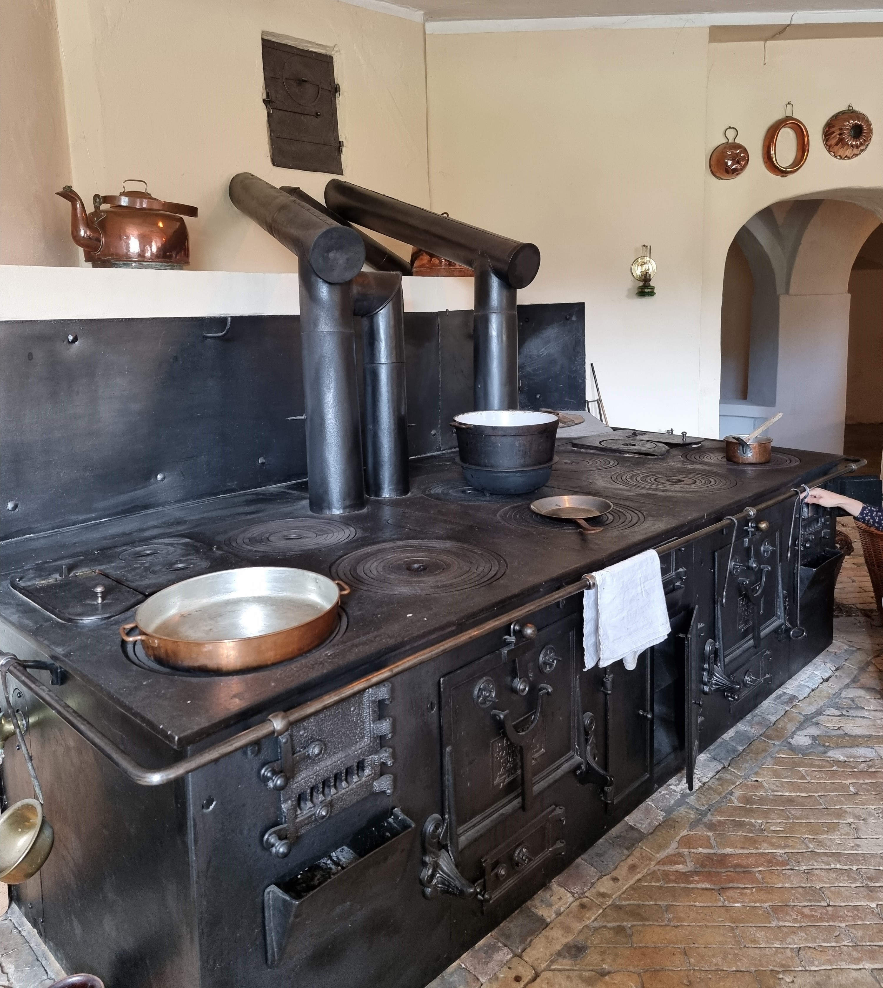 Reventlow-Museet Pederstrup har nemlig trukket i mig, netop på grund af det flotte og meget store komfur fra midten af 1800-tallet, som er en del af museet. Det blev for nyligt restaureret, så det kunne bruges igen. Her er gang i komfuret hver torsdag, så selvfølgelig var datteren og jeg afsted om torsdagen.