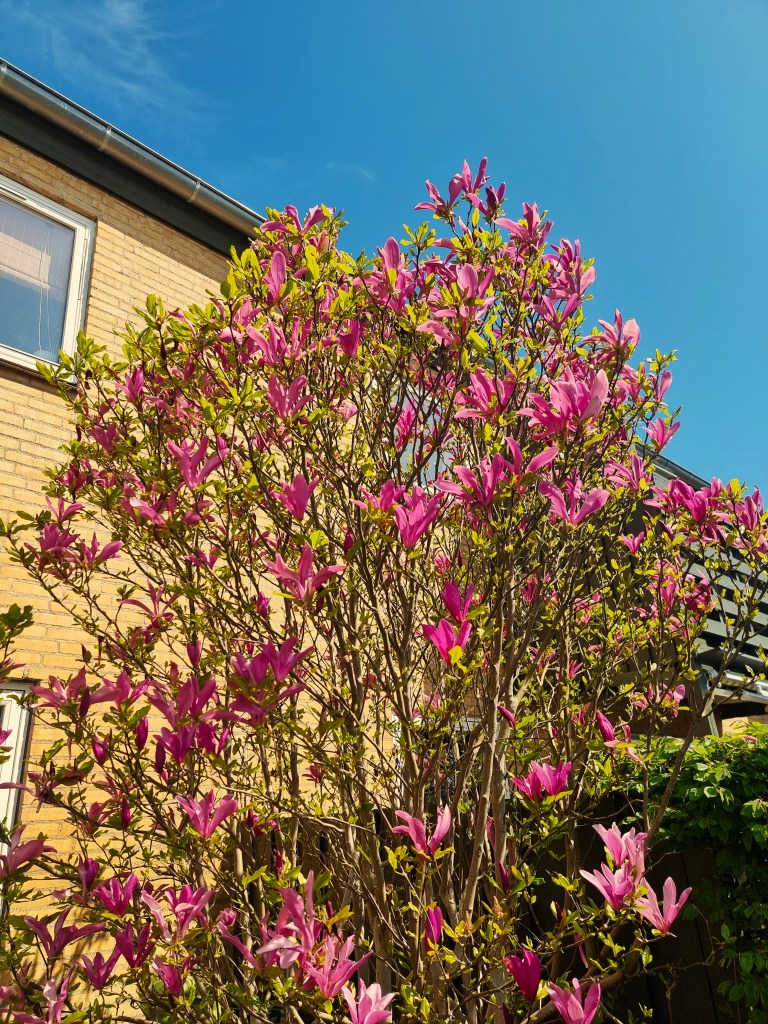 Men hvad kan ellers snapses? Det lader til, at der er et tema for mine nyeste snapse: lyserøde blomster. For nogle uger siden blomstrede magnolietræerne – eller tulipantræerne, som de også kaldes. Min far har sådan et træ stående i sin have og eftersom magnolie jo også er spiselig, tænkte jeg, at det måtte da afprøves, om et kunne snapses. Altså plukkede jeg nogle håndfulde blomster, kom dem i et glas med lidt sukker, hældte klar snaps over og lod det trække i skabet et par uger. Nu er snapsen siet fra og fortyndet med ren snaps. Den er blevet en brunlig gylden farve og ikke, som jeg havde håbet, lyserød ligesom blomsterne. Men jeg er nu stadig spændt på smagen. Jeg kan godt lide at lade det trække yderligere et par uger, før vi smager – så jeg er stadig svar skyldig på, om det er en god idé at lave magnoliesnaps.