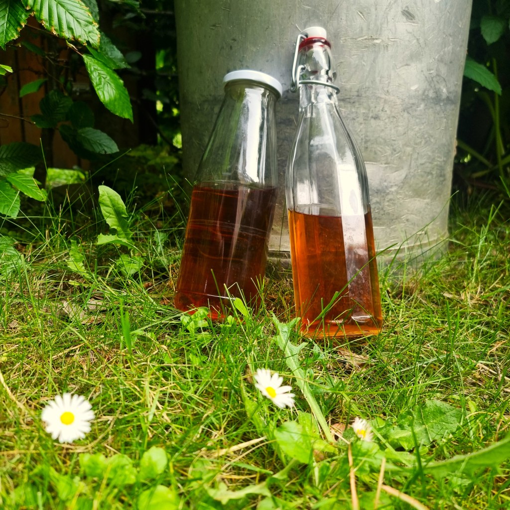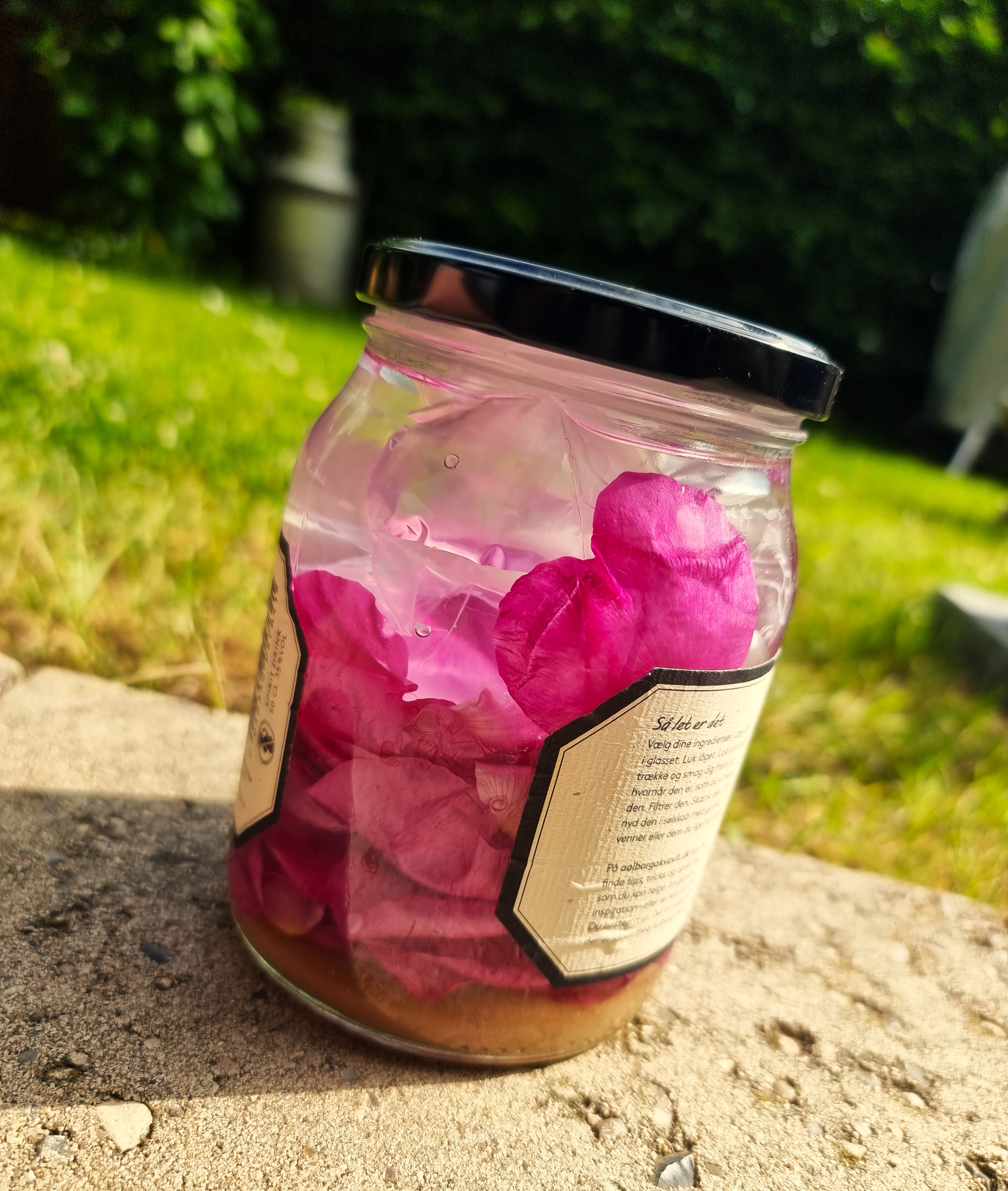 Og nu har jeg hældt snaps på flere blomster – eller kommet flere blomster på snaps, om man vil. Jeg har nemlig længe overvejet, om hybenrosesnaps mon også ville være godt? Og de blomstrer netop nu så smukt. Derfor er det nu endnu et snapseforsøg, jeg har påbegyndt. Da jeg ofte før har lavet rosensukker af hybenroser, tænkte jeg, at den nok også egnede sig som en sødlig snaps. Derfor har jeg også tilsat lidt sukker til hybenrosesnapsen. I øvrigt havde jeg lidt roser tilovers og da jeg skulle lave rabarberkompot til aftensmaden, er det nu rabarberkompot med hybenrose. Så det kan man også bruge hybenroser til. Snapser du noget for tiden?