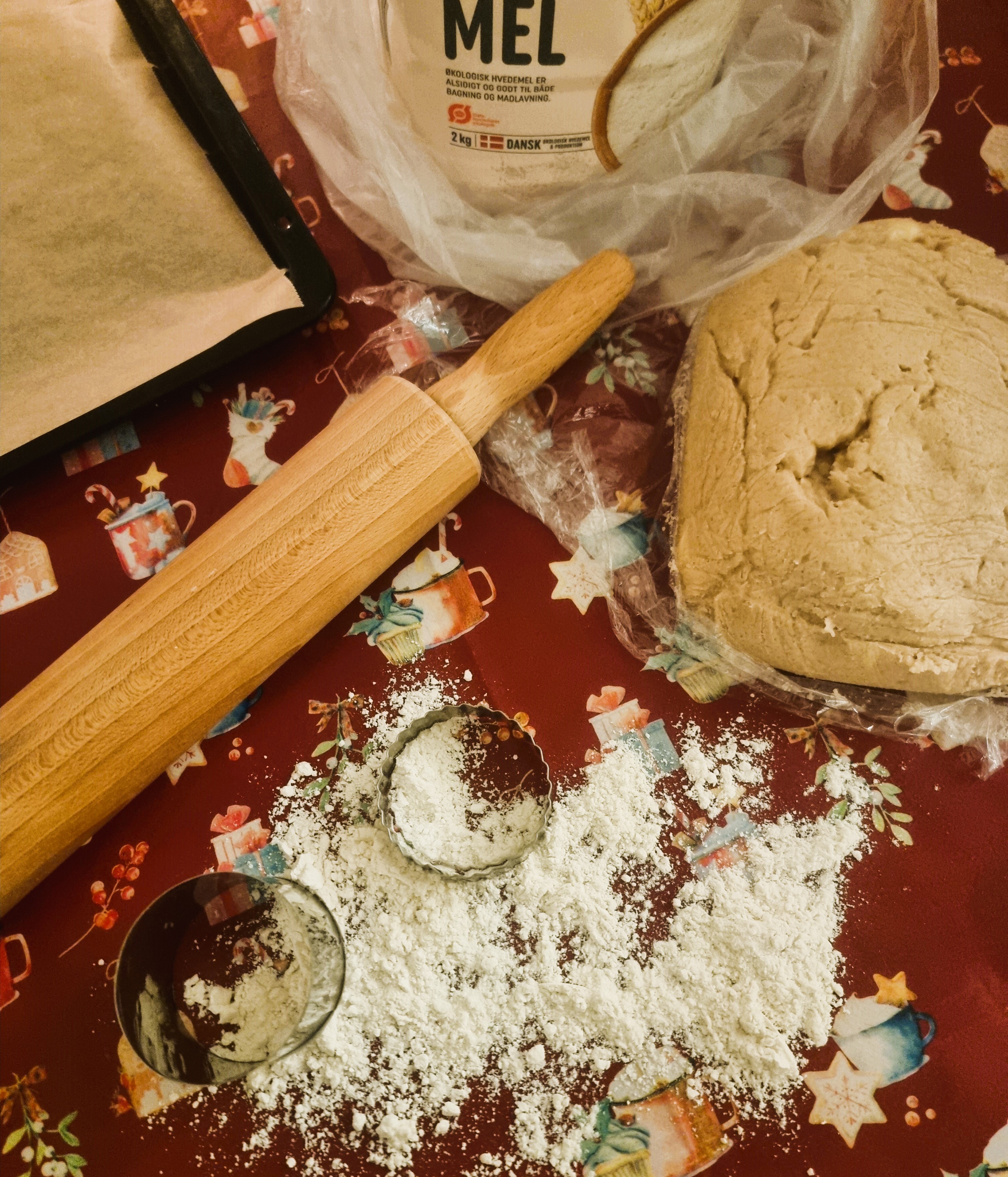 Det var en spændende dej at sammensætte, måske pga. vinen – men dejen var også ret klistret og svær at arbejde med, så jeg endte med at tilsætte lidt mere mel, da den skulle rulles ud, da det ellers virkede ret umuligt. Små kager blev udstukket og bagt og efter at være ‘bagt lyse’ i ovnen blev de drysset med sukker eller kanel.