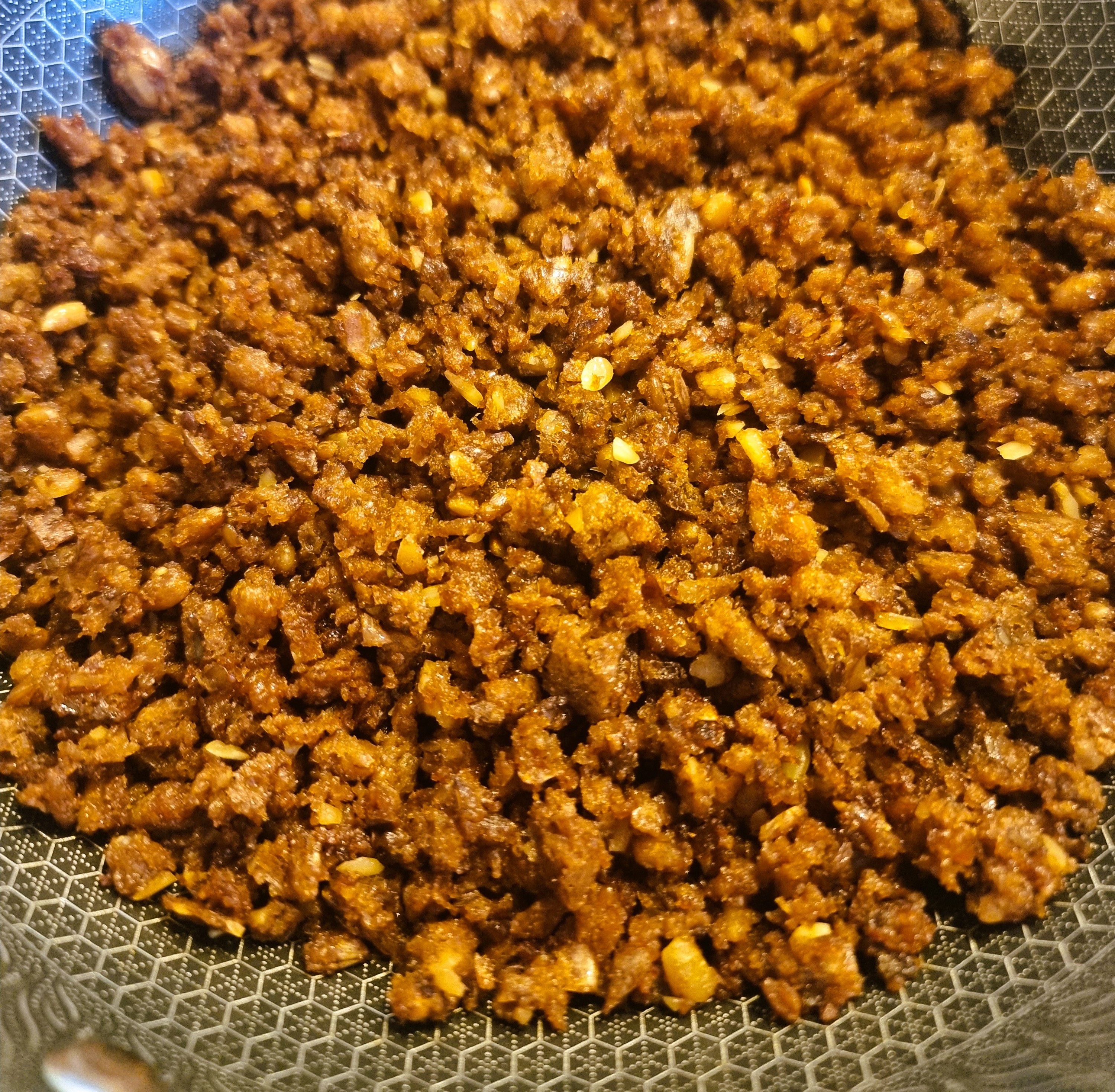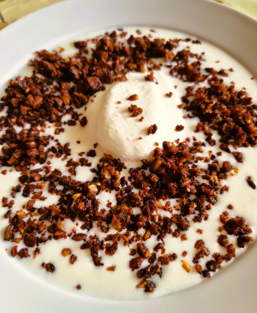 Herhjemme var dommen at retten mætter rigtig godt og 2 ud af 3 mente at retten var et hit. Men der er jo stadig gode muligheder i retten og det er nok ikke sidst gang, den bliver afprøvet. Næste gang prøver vi måske en anden variant. Eller man kunne lave en basisudgave af retten og lave en form for ‘byg-selv kørom’ ved bordet, hvor man tilsætter de krydderier eller toppings, man selv mest har lyst til. Det er dejligt med en historisk opskrift, der kan varieres udi det uendelige. Velbekomme!